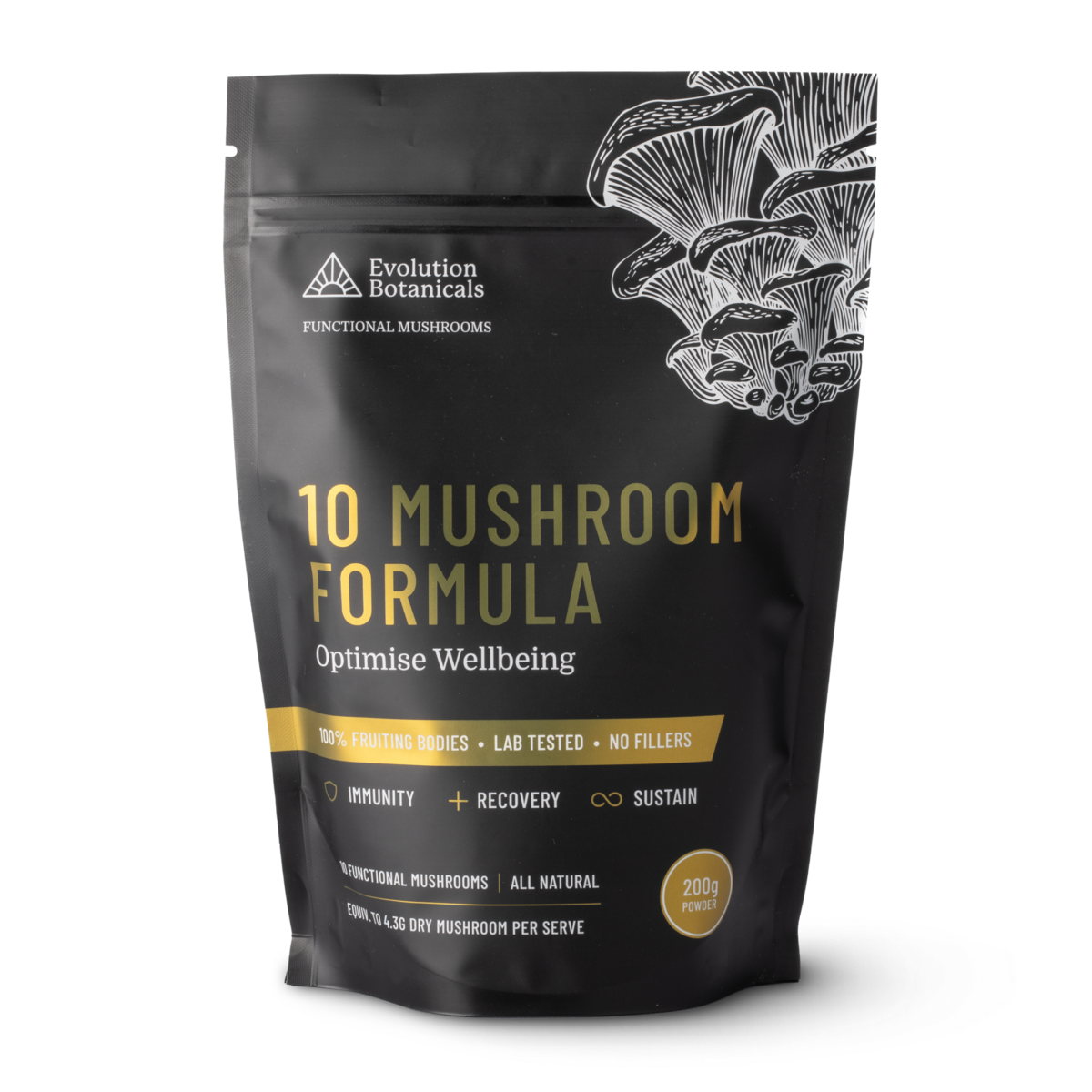 Cultivate energy, immunity & recovery with our 10 Mushroom Formula, a potent organic blend featuring Chaga, Lion’s Mane, Cordyceps, Turkey Tail, and more. Made from 100% fruiting bodies with no fillers, it’s rich in >30% beta-glucans and other polysaccharides. Stir into hot water for a soothing tonic and a daily ritual to elevate immunity & wellbeing