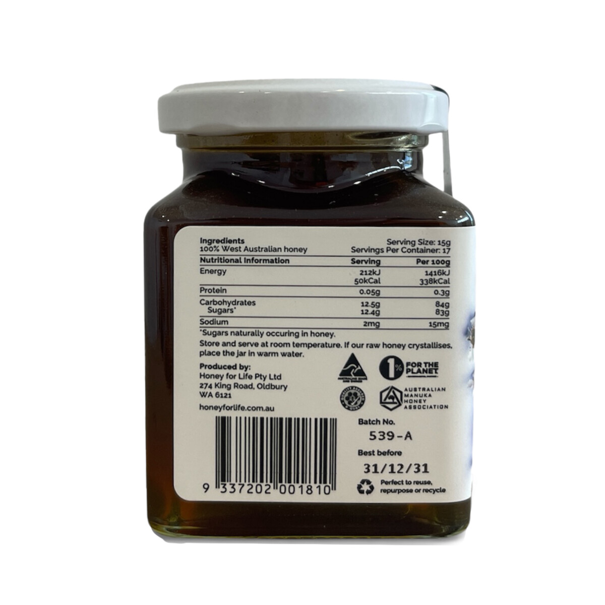Collected on our reclaimed and sustainable farmland in Western Australia, this premium honey is a pure, raw, bioactive and therapeutic honey.