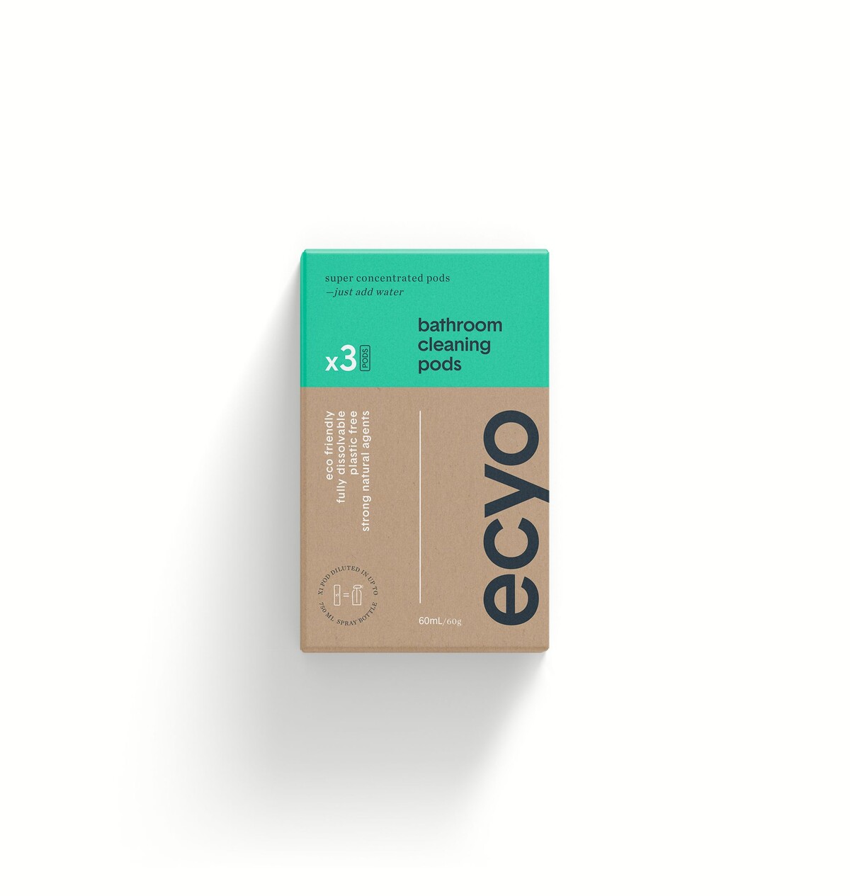 This small pack of ecyo cleaning pods will make 3 bathroom cleaning sprays up to 750ml in size.