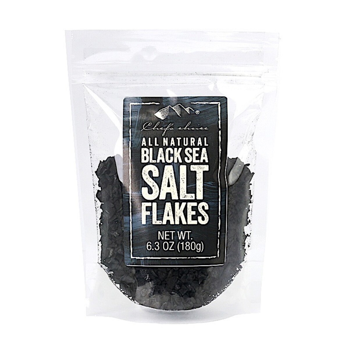 Chef's Choice All Natural Black Sea Salt Flakes are natural Mediterranean sea salt flakes enriched with activated charcoal.