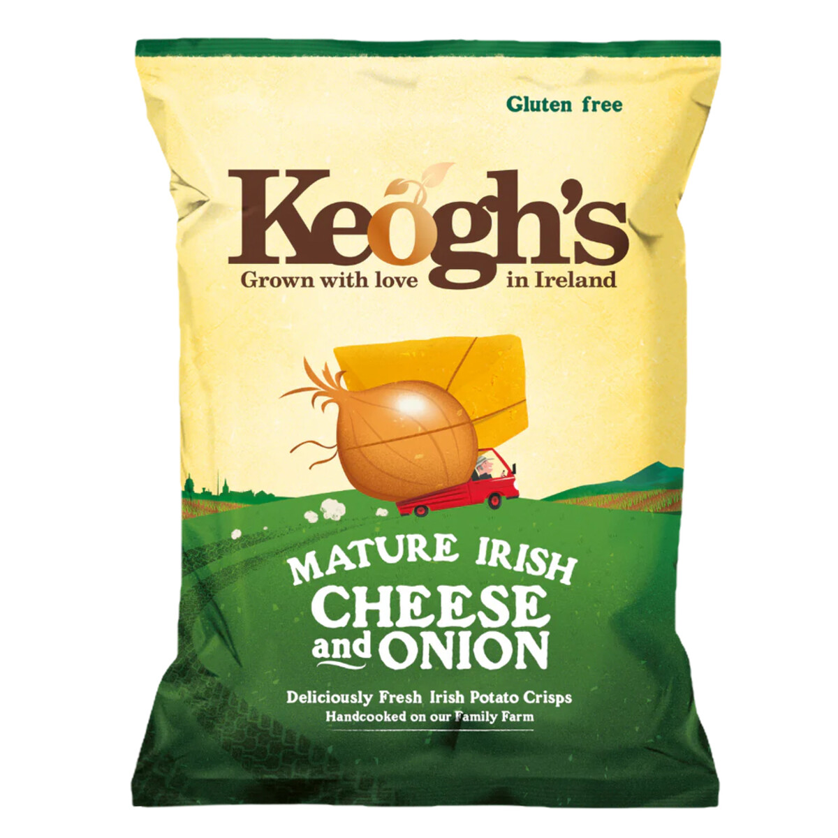 Our Mature Irish Cheese & Onion Potato Crisps are hand cooked in small batches using potatoes grown on our farm, the finest quality sunflower oil and seasoned with ingredients sourced from local Irish suppliers. The delicious cheese comes from our friends in Carberry, Co. Cork. Famous for its strong and robust flavour, it combines the sharpness of mature cheddar, the nuttiness of Swiss cheese and the bite of Parmesan, which together with our potatoes makes Ireland’s finest Mature Irish Cheese and Onion Potato Crisps.