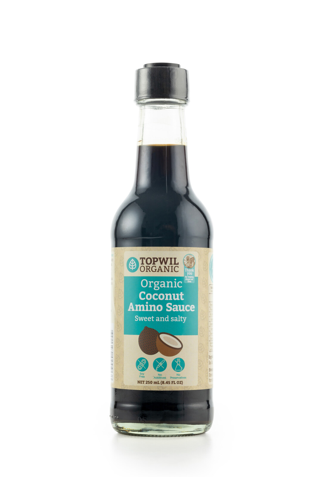 Topwil Organic Coconut Amino Sauce - Seet & Salty is made from sustainably grown, organically certified coconuts. Sap collected from coconut blossoms is partially fermented, cooked and aged. This gives you a healthy, tasty seasoning flavour.