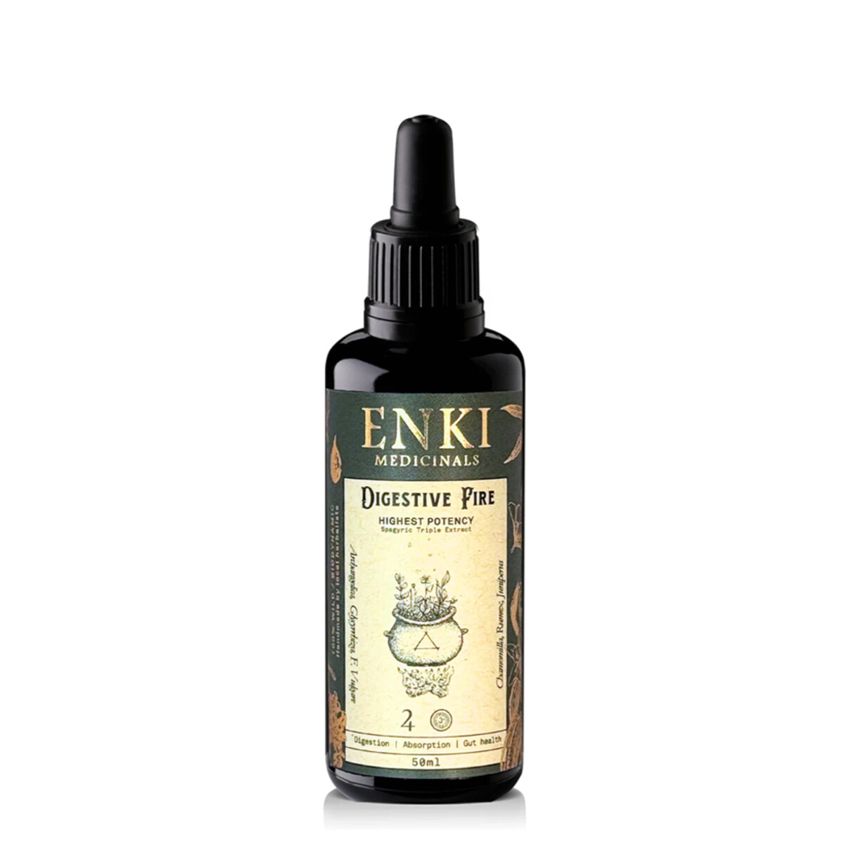 Enki’s Digestive Fire Spagyric Tincture is an alchemically crafted tonic formulated to ignite the inner sacred flame. It supports healthy digestion, enzyme flow, and nutrient assimilation for optimal vitality. Based on a traditional blend of digestive botanicals—including Angelica root, Yellow Dock, Juniper berry, Barberry root, Chamomile, Cured Orange Peel, Fennel seed, Liquorice root, and Anise—this tincture nourishes and stimulates the digestive organs for systemic clarity and energy. Honey and cane spirit provide vegetal vitality and flavour.