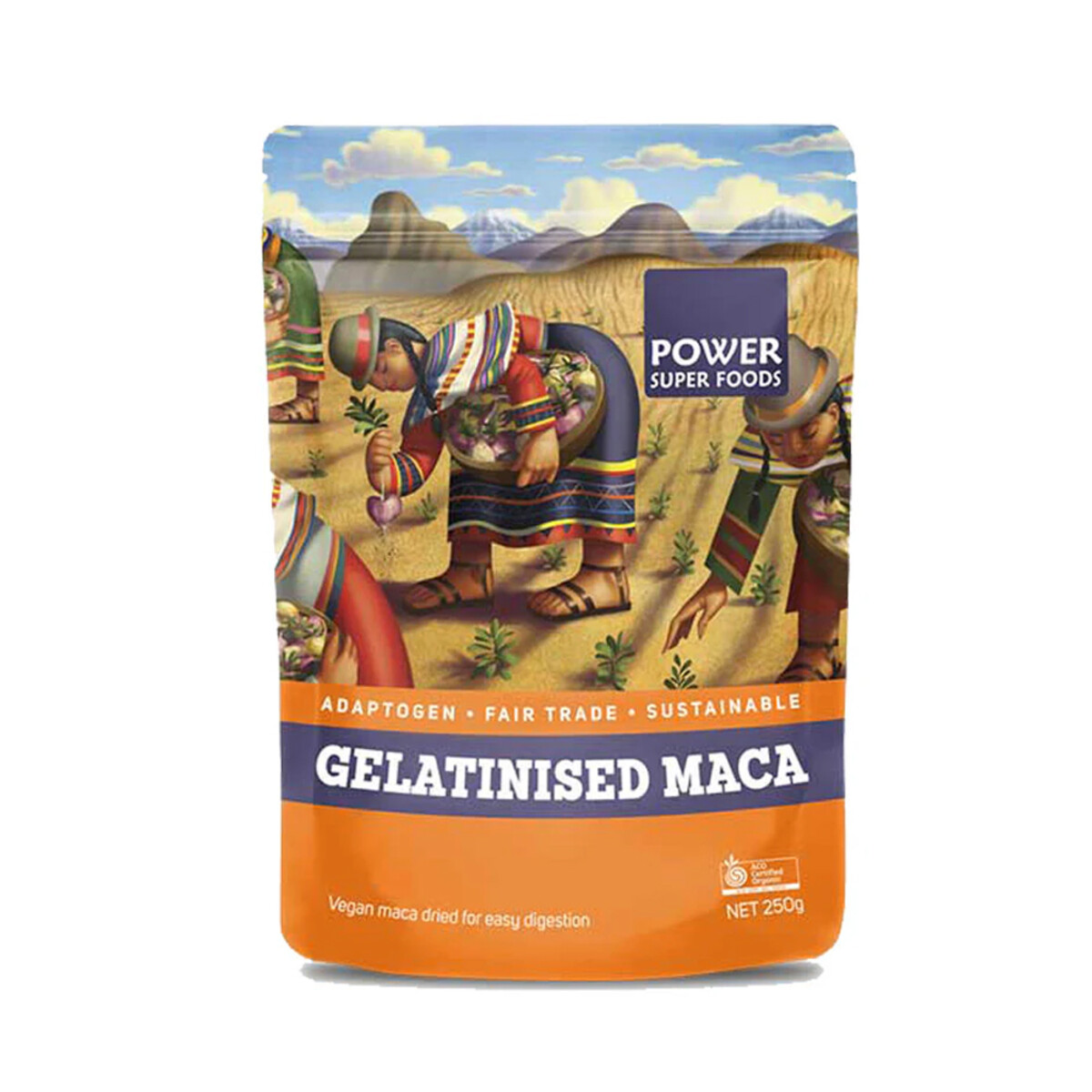 Gelatinised Maca does not contain gelatin and is still vegan. Gelatinisation is a gentle heat process that breaks down the starches and fibres to allow easier digestion for sensitive tummies and better absorption. Our certified organic maca is hand harvested and dried at the source ensuring nutrients and freshness are uncompromised. It's a blend of yellow, red and black maca varieties.