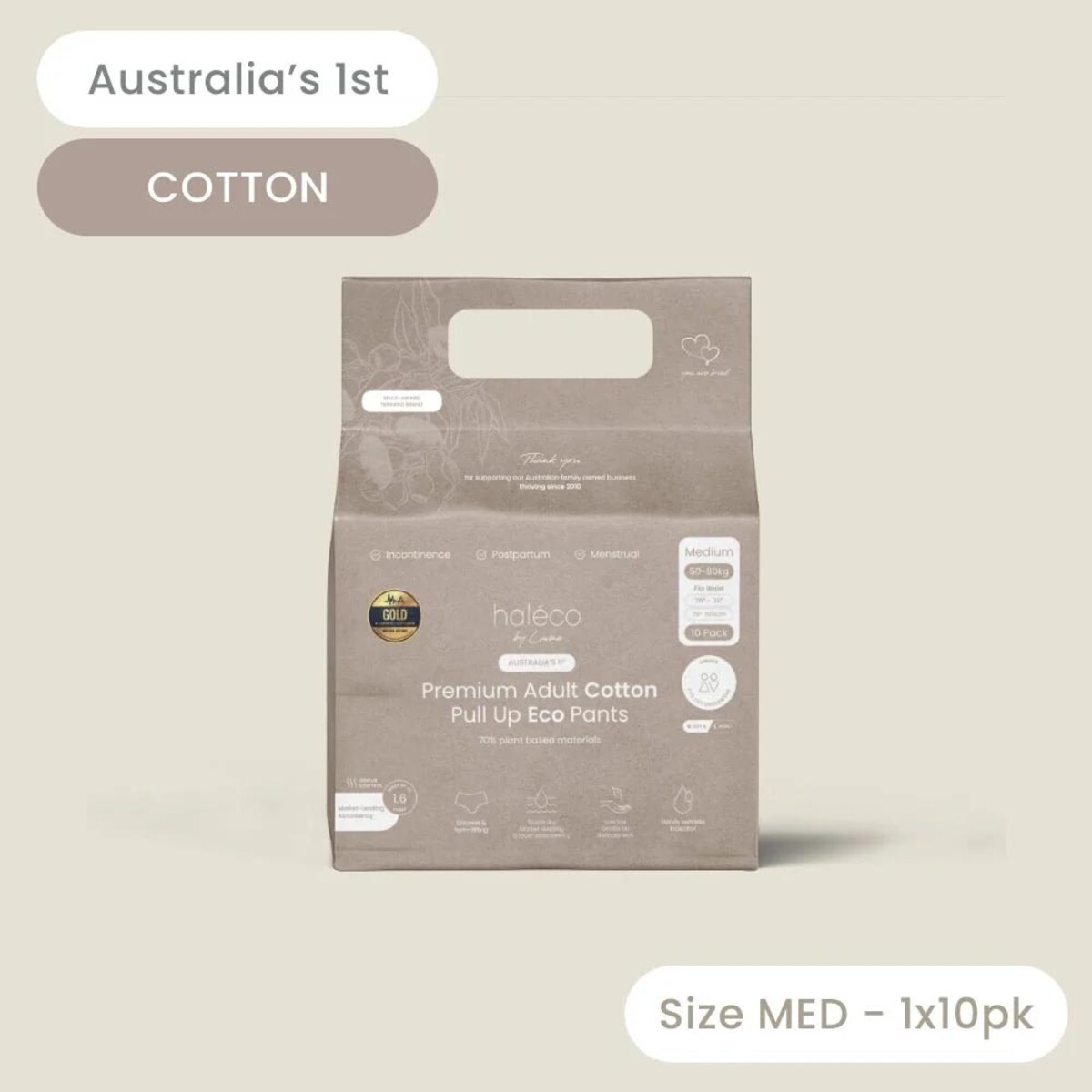 Haleco 70% Biodegradable COTTON Adult Pull Up Pants | SINGLE PACK - Soft Comfortable Leak Resistant Postpartum & Incontinence & Menstrual Protection, Gentle on Skin, Discreet Cotton Style