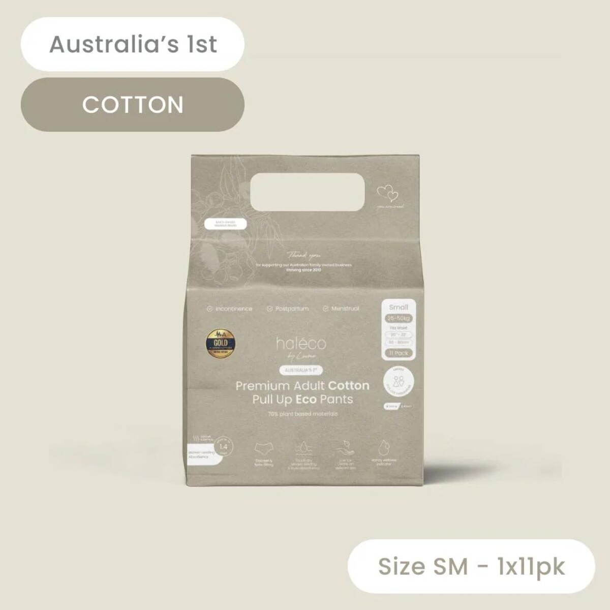 Haleco 70% Biodegradable COTTON Adult Pull Up Pants | SINGLE PACK - Soft Comfortable Leak?Resistant Postpartum & Incontinence & Menstrual Protection, Gentle on Skin, Discreet Cotton?Style