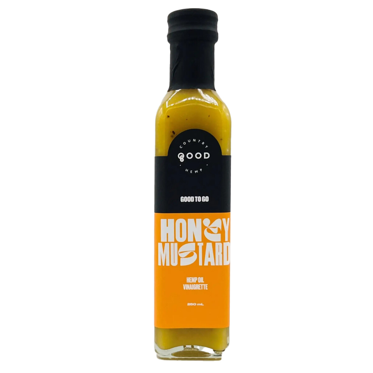 Ingredients: Hemp oil (41%), honey (36%), vinegar, mustard, (9%) (water, mustard seed, salt, sugar, food acid (acetic)), turmeric, salt, pepper, vegetable gum (xanthan)