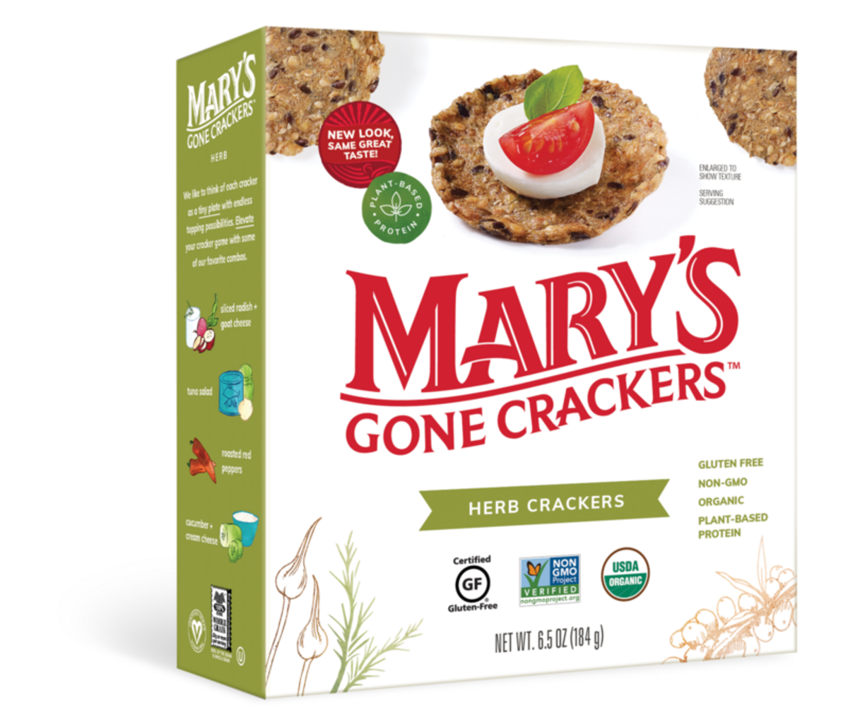 Mary's Gone Crackers Herb Crackers appeal to your epicurean side with fields of rosemary, a touch of garlic and even a hint of lemon.