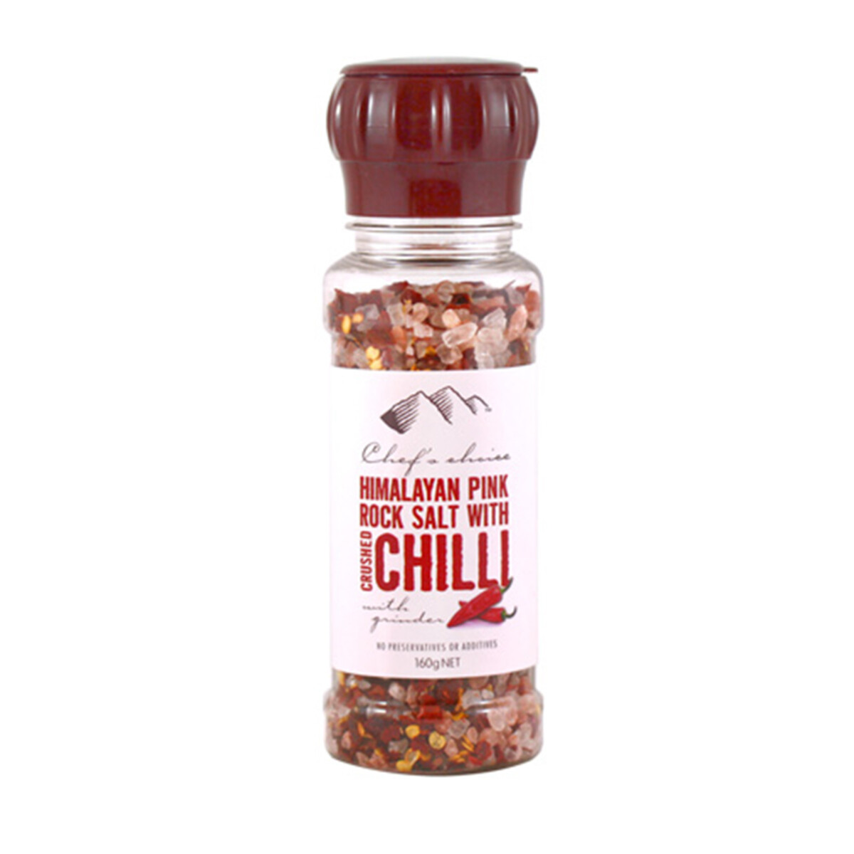 Chef’s Choice Himalayan Pink Fine Salt with Ground Chilli is beautifully balanced with salt and chilli to add the perfect amount of kick to your dishes. The purest hand-mined salt found deep inside the pristine Himalayan Mountains, combined with fiery red ground chilli, a must-have for all chilli fans!