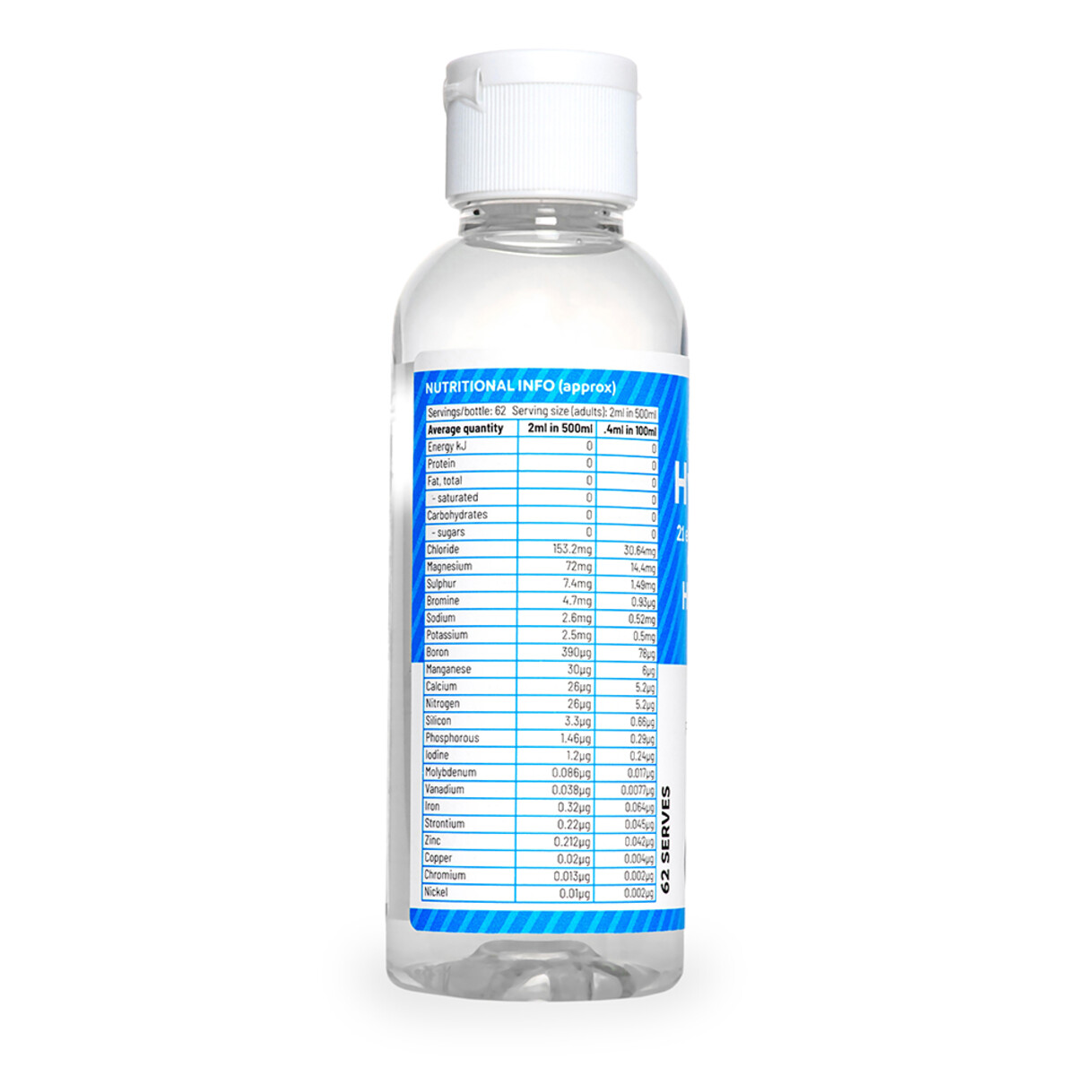 INGREDIENTS: Spring water, concentrated minerals and trace elements derived from sea water. This is a natural product so analysis may vary slightly.