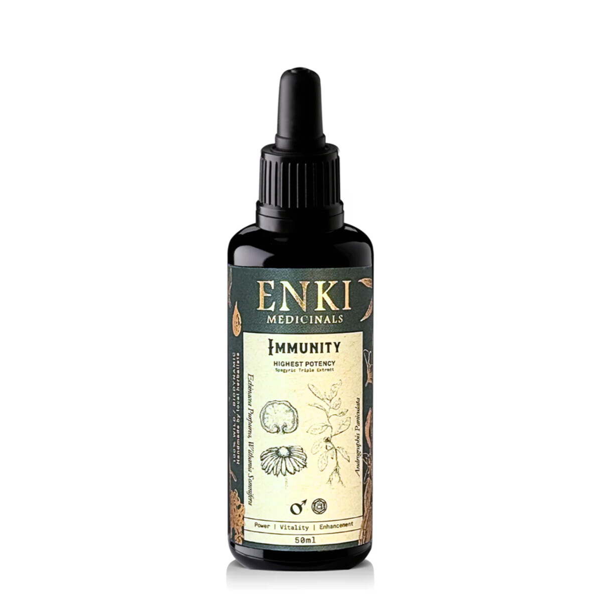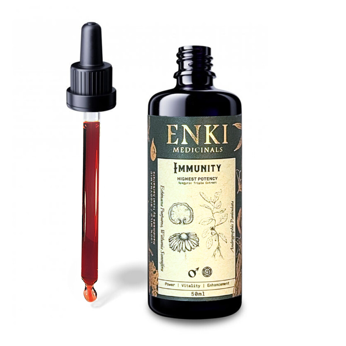 Enki’s Immunity Spagyric Tincture is a full-spectrum herbal tonic designed to support immune function, systemic strength, and recovery from depletion. Formulated with Ashwagandha, Echinacea, and Andrographis—each revered for their immune-modulating and adaptogenic properties—this blend is extracted using traditional spagyric alchemy to preserve the plant’s chemical, mineral, and subtle intelligence.
