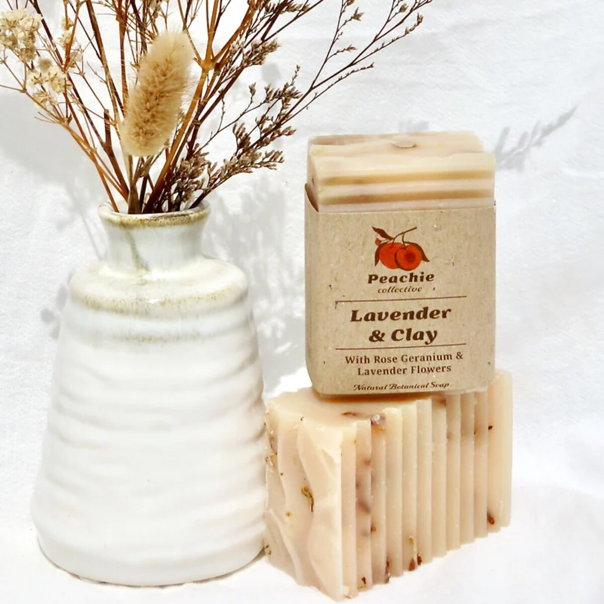 Indulge in the soothing and luxurious combination of Lavender, Rose Geranium, and Clay. The lavender essential oil provides a comforting and relaxing aroma, while the rose geranium oil adds a touch of floral sweetness.