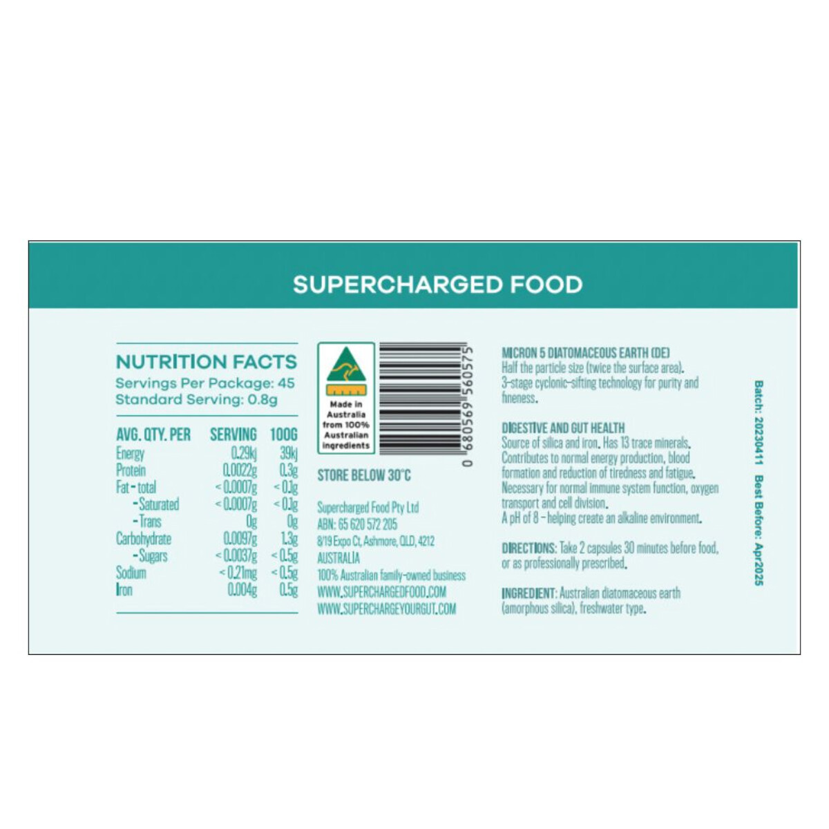 5 micron 100% Australian food-grade diatomaceous earth (most food DE is around 10 microns).