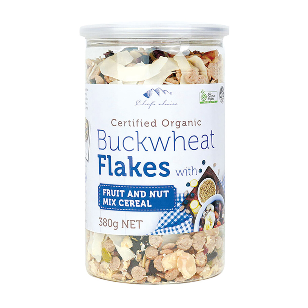 Chef’s Choice Breakfast Certified Organic Delicious Buckwheat Flakes with Fruit & Nut Mix Cereal is a healthy and nutritious alternative to oats and other corn-based cereals. Mixed with a combination of delicious nuts, fruits and organic buckwheat flakes, which have a delicious nutty flavour, this mix is a great way to start your day.