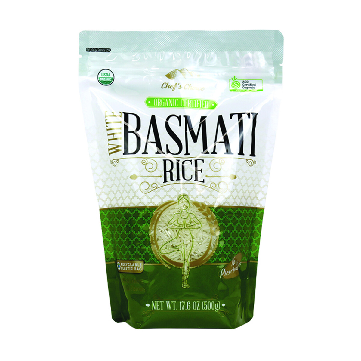 Chef’s Choice Certified Organic Basmati White Rice is an aromatic long grain white rice with a subtle nutty flavour and fine texture. Use Basmati rice as a perfect side dish with soups, stews, pilafs, casseroles and curries.