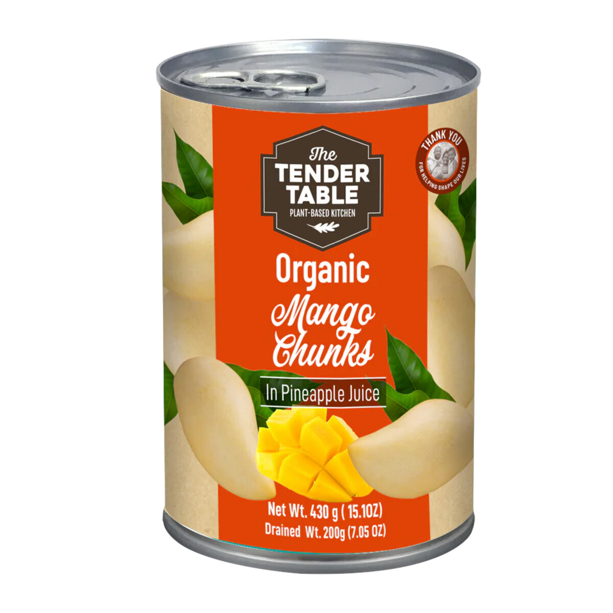 Tender Table Organic Mango Chunks in Pineapple Juice produces the perfect combination of sweet and tangy with the use of our premium organic mango chunks and pineapple juice. This wonderful cohesion of flavours works perfectly as an appetizer, dessert or added to your favourite fruit cake.