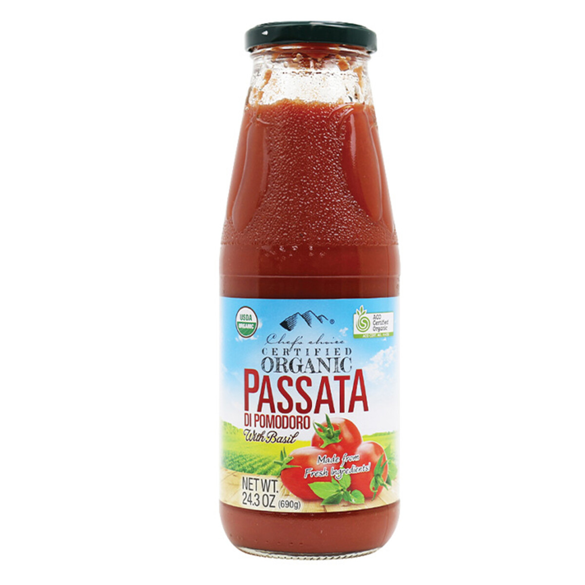Chef’s Choice Certified Organic Passata di Pomodoro with Basil is a superior tomato base made from the highest quality organic tomatoes and basil, hand picked and ripened under the beautiful Italian sun.