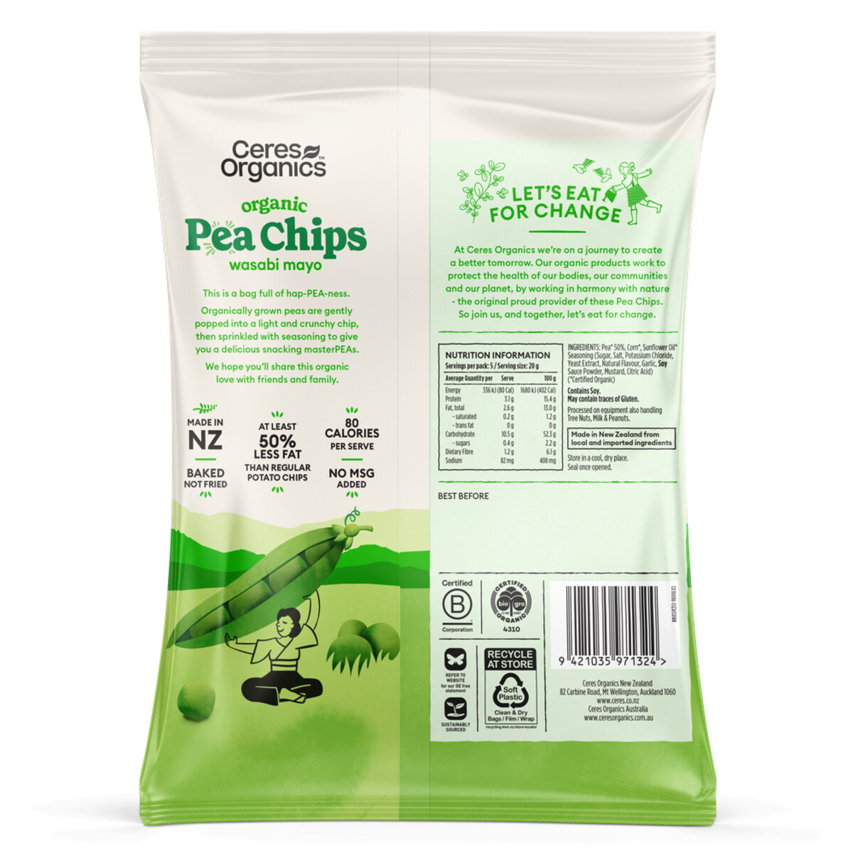 Organically grown peas gently popped into a light and crunchy chip, then sprinkled with seasoning to give you a delicious snacking masterPEAs.