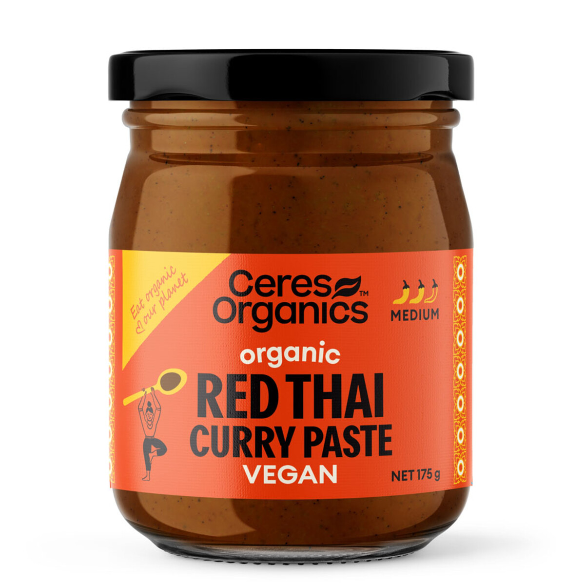 Ceres Organics Red Thai Curry Paste is made using organically grown herbs and spices with organic coconut oil and vinegar, a touch of salt, and sweetened with organic coconut sugar. It's a culinary masterpiece that brings the vibrant flavours of Thailand straight to your kitchen!