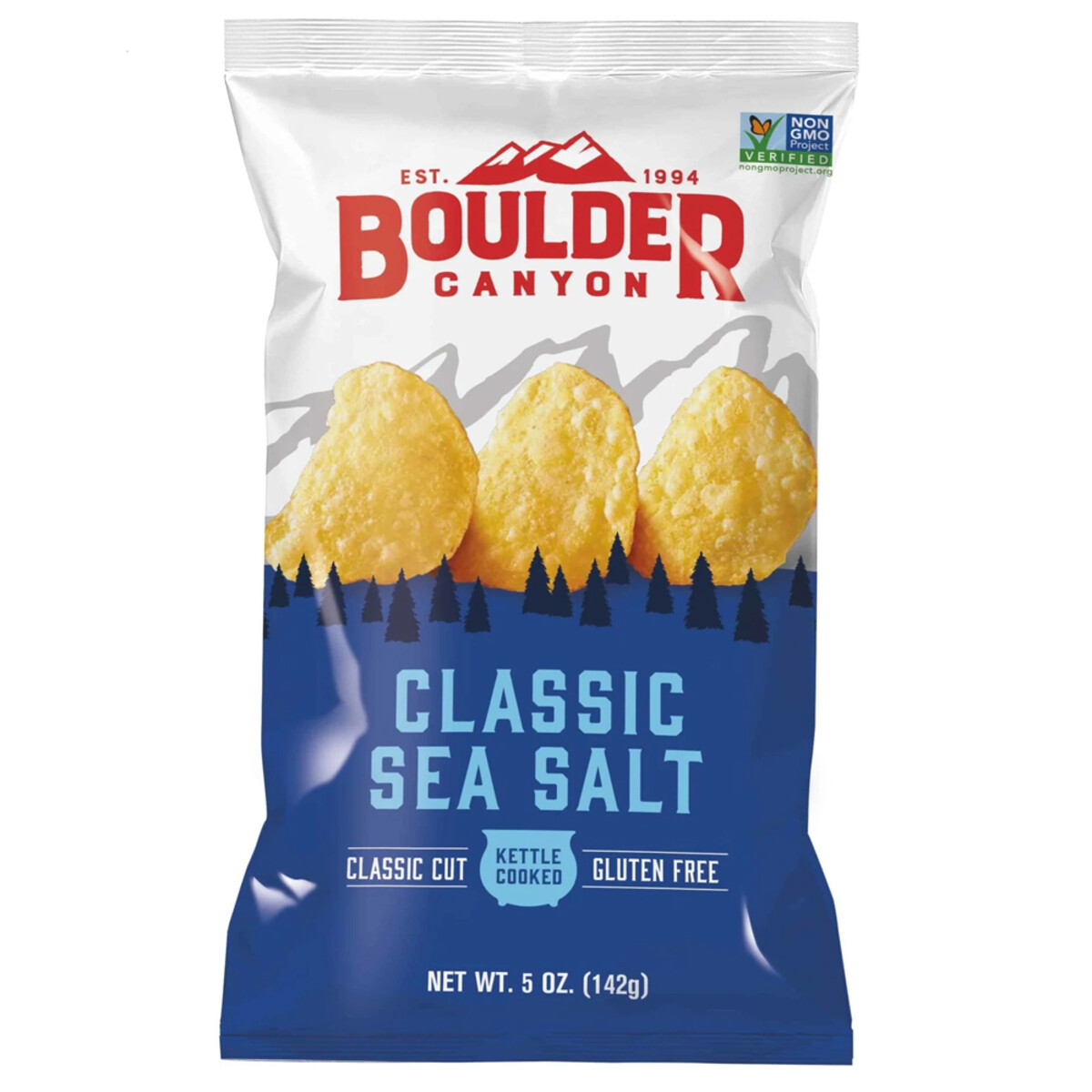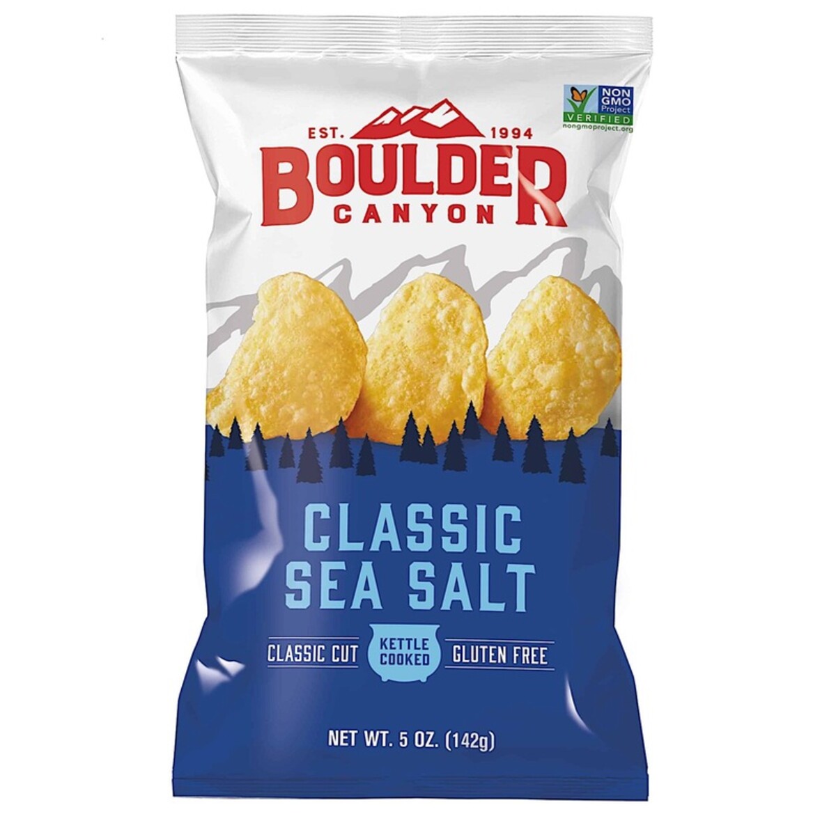 Boulder Canyon Kettle cooked potato chips are thickly sliced from premium quality potatoes and slow cooked using sunflower and/or safflower oil.