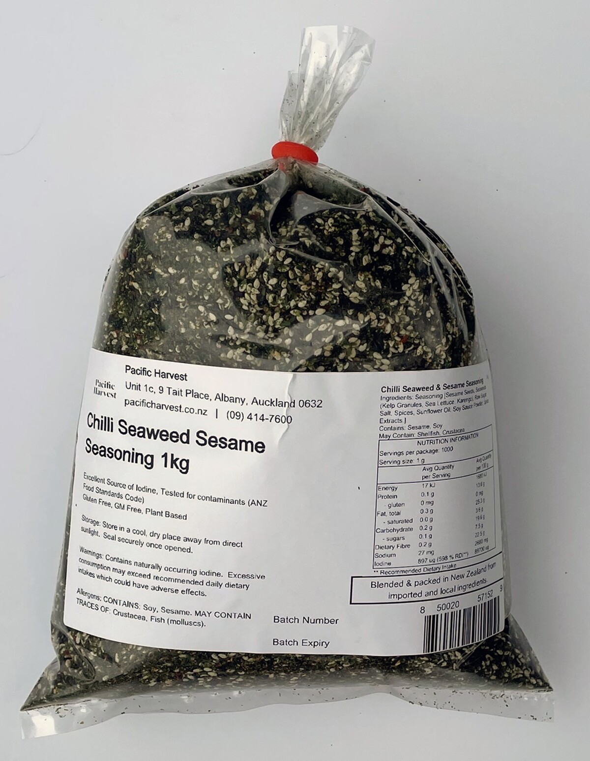 Chilli – Sesame Seeds 48%, Seaweeds 35%, Raw Sugar, Salt, Spices (Capsicum 3%), Sunflower Oil, Soy Sauce Powder, Spice Extracts.