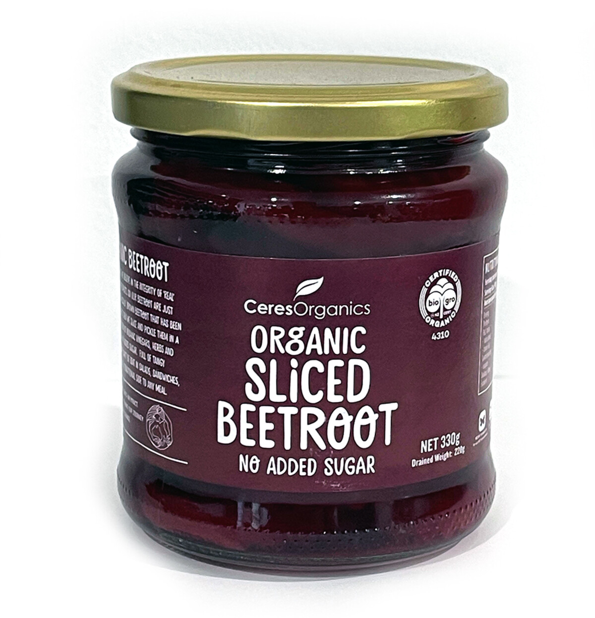 Ceres Organics take organically grown beetroots that have been gently steamed and then they slice it and pickle them in a traditional infusion of organic vinegars, herbs and spices with no added sugar. Full of tangy deliciousness, they're perfect for salads, sandwiches and burgers or as a traditional side dish.