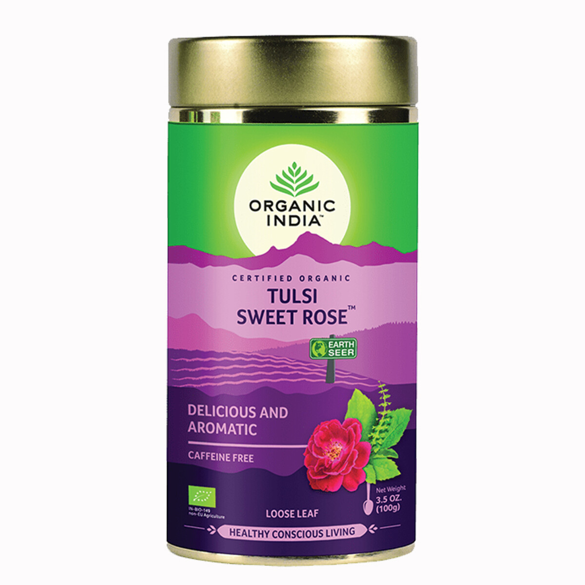 Ingredients: Organic Krishna Tulsi (Leaf), Organic Vana Tulsi (Leaf), Organic Rama Tulsi (Leaf), Organic Chamomile Flower, Organic Rose Petal, Organic Lemongrass (Leaf)