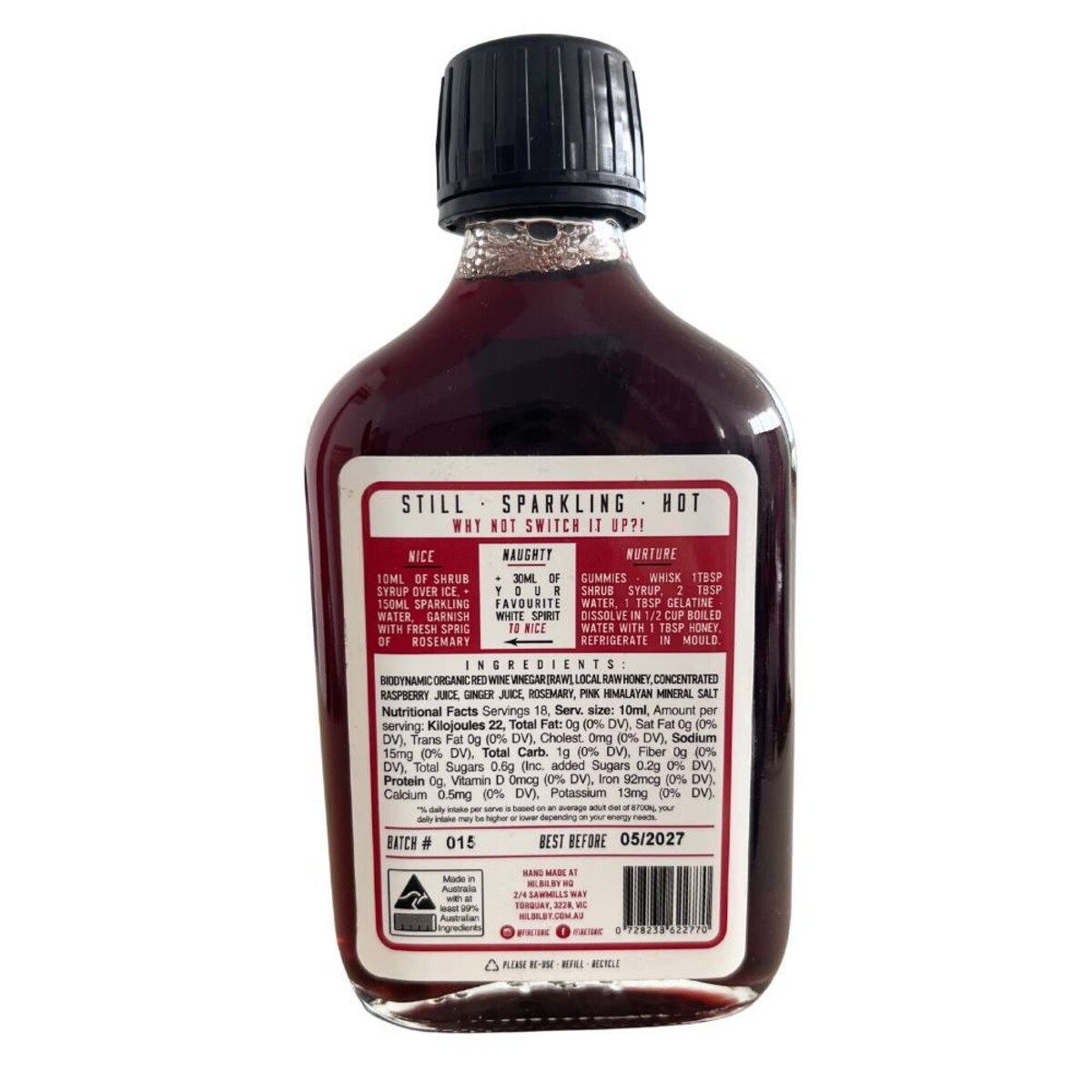 Biodynamic organic red wine vinegar (raw), local raw honey, concentrated raspberry juice, ginger juice, rosemary, pink himalayan mineral salt