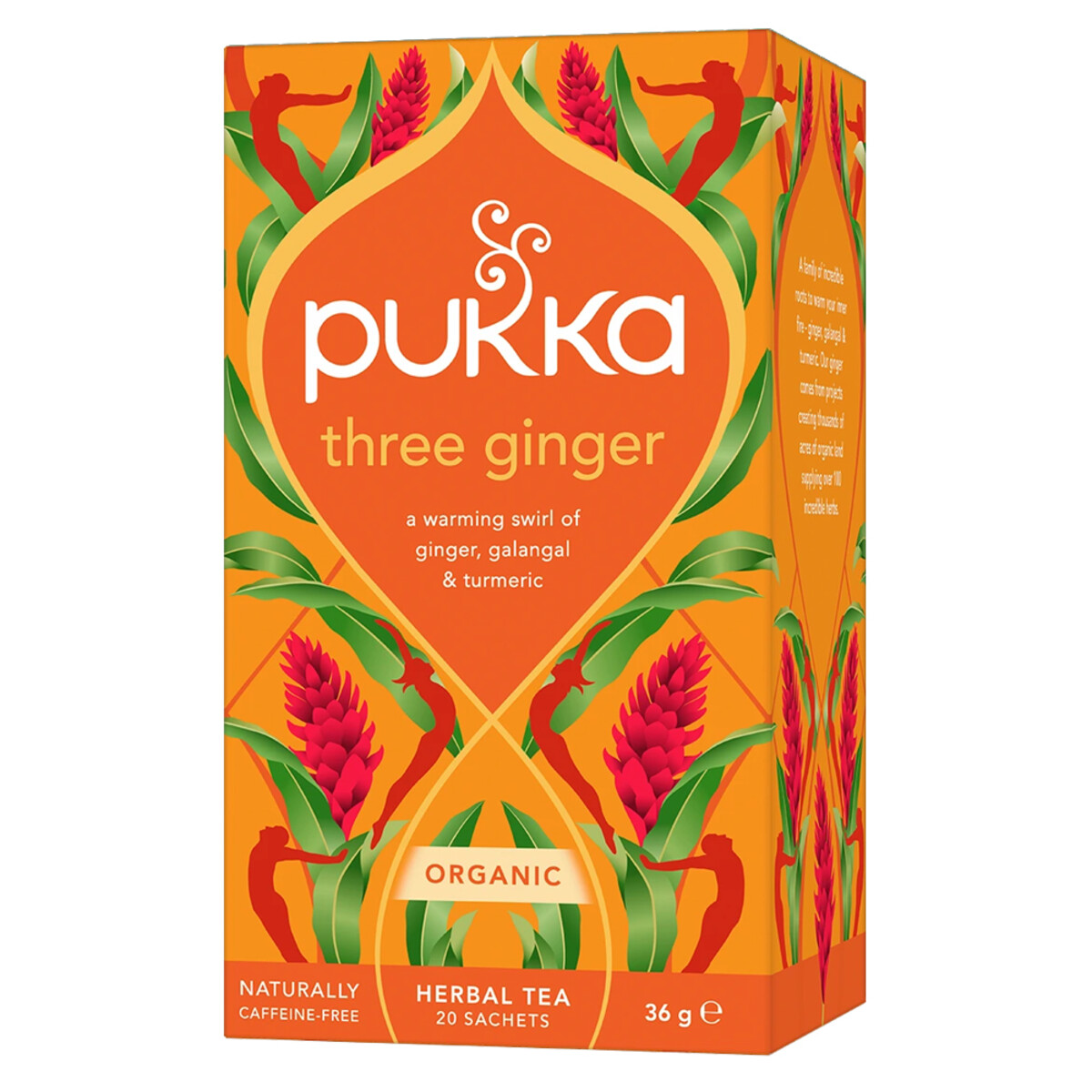 Three Ginger tea is a warming swirl of organic ginger, galangal & golden turmeric.