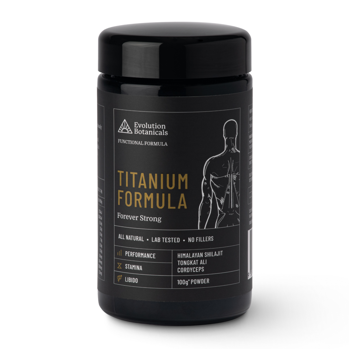 Titanium Formula combines the world’s most effective strength mineral, herb, and mushroom extracts powders, Himalayan Shilajit, Tongkat Ali, and Cordyceps militaris. This powerful tonic supports performance, stamina, and desire. 100% natural and filler free, it’s your “forever strong” ritual for endurance. Mix with water or coffee to unlock your primal edge.