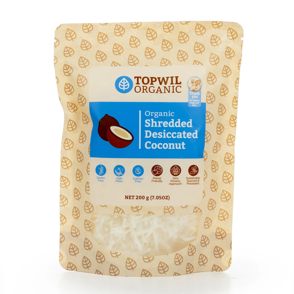 Topwil Organic Shredded Desiccated Coconut is made from fresh, environmentally sustainable coconuts grown in organically certified farms bringing an exotic, tropical taste to your table. They are perfect for use in cereal mixes, baking, desserts or to be enjoyed lightly toasted or raw.