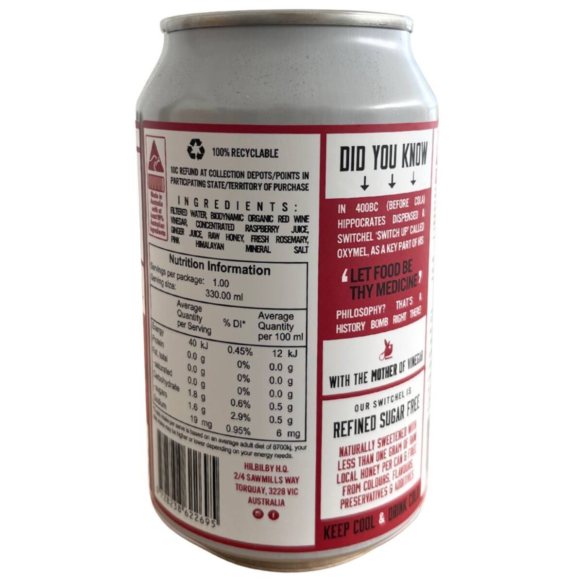 Our Switchel is all natural & refined sugar free & contains only 40kJ per can, sweetened with around 0.5g of raw honey per can.