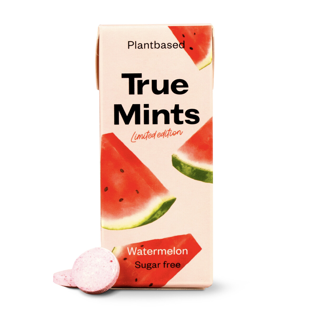 The true taste of summer freshness. Naturally refreshing, limited-edition sugar-free pastilles with a distinct fruity watermelon zing. Plant-based and sustainably packed.