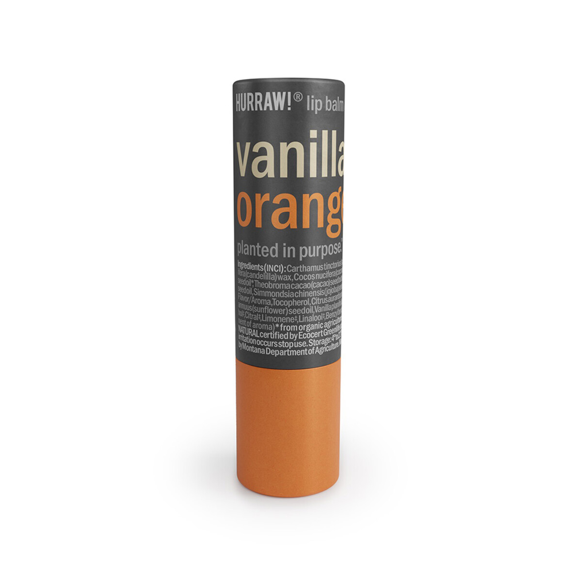 Ingredients: Carthamus tinctorius (safflower) seed oil*, Euphorbia cerifera cera (candellia) wax, Cocos nucifera (coconut) oil*, Ricinus communis (castor) seed oil*, Theobroma cacao (cacao) seed butter*, Limnanthes alba (meadowfoam) seed oil, Simmondsia chinensis (jojoba) seed oil*, Olea europaea (olive) fruit oil*, Flavor/Aroma, Tocopherol, Citrus aurantium dulcis (orange) peel oil, Helianthus annuus (sunflower) seed oil, Vanilla planifolia (vanilla) fruit extract*, Anise alcohol‡, Citral‡, Limonene‡, Linalool‡, Benzyl benzoate‡, Geraniol‡ (‡natural component of aroma)