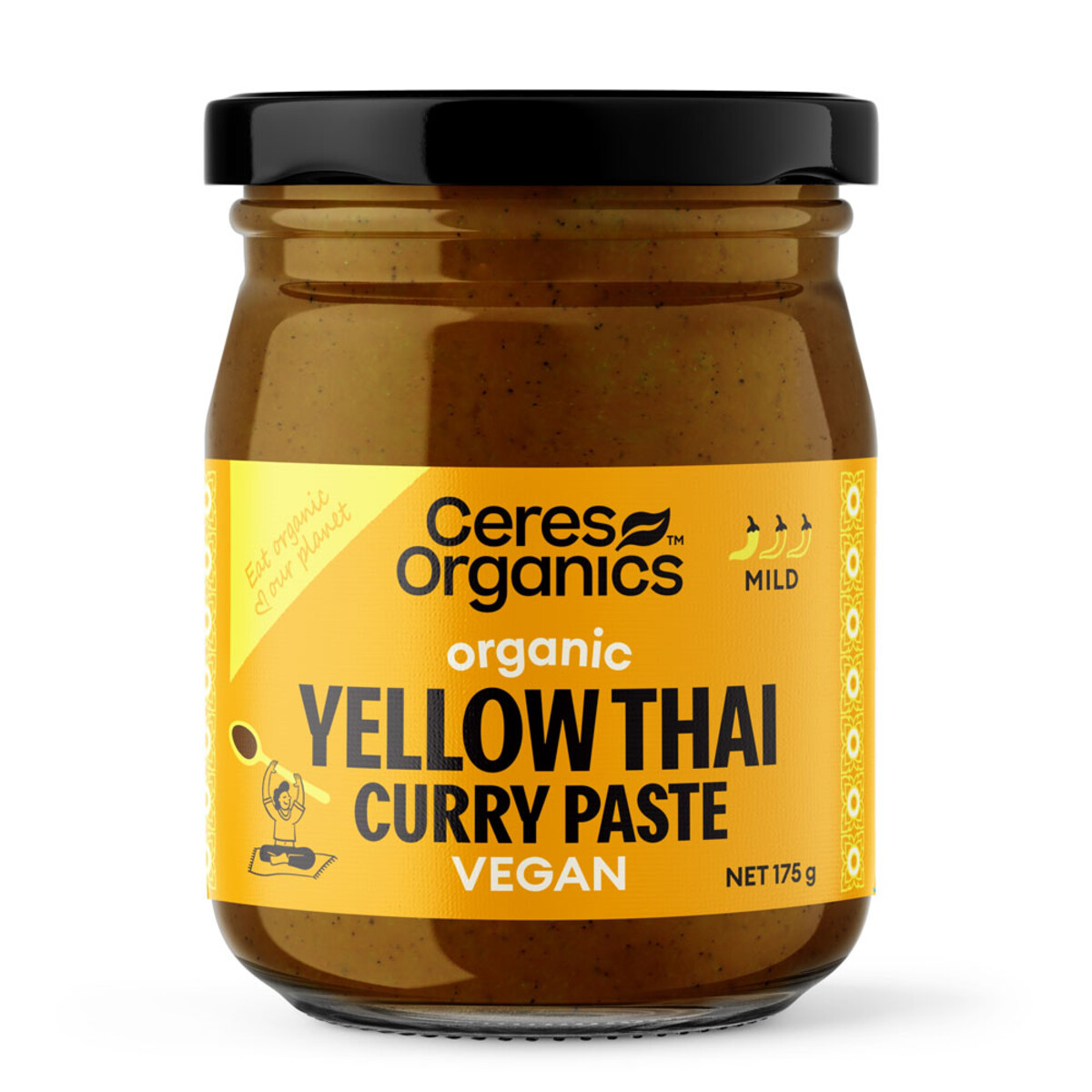 Ceres Organics Yellow Thai Curry Paste is made using organically grown herbs and spices with organic coconut oil and vinegar, a touch of salt, and sweetened with organic coconut sugar. It's a culinary masterpiece that brings the vibrant flavours of Thailand straight to your kitchen!